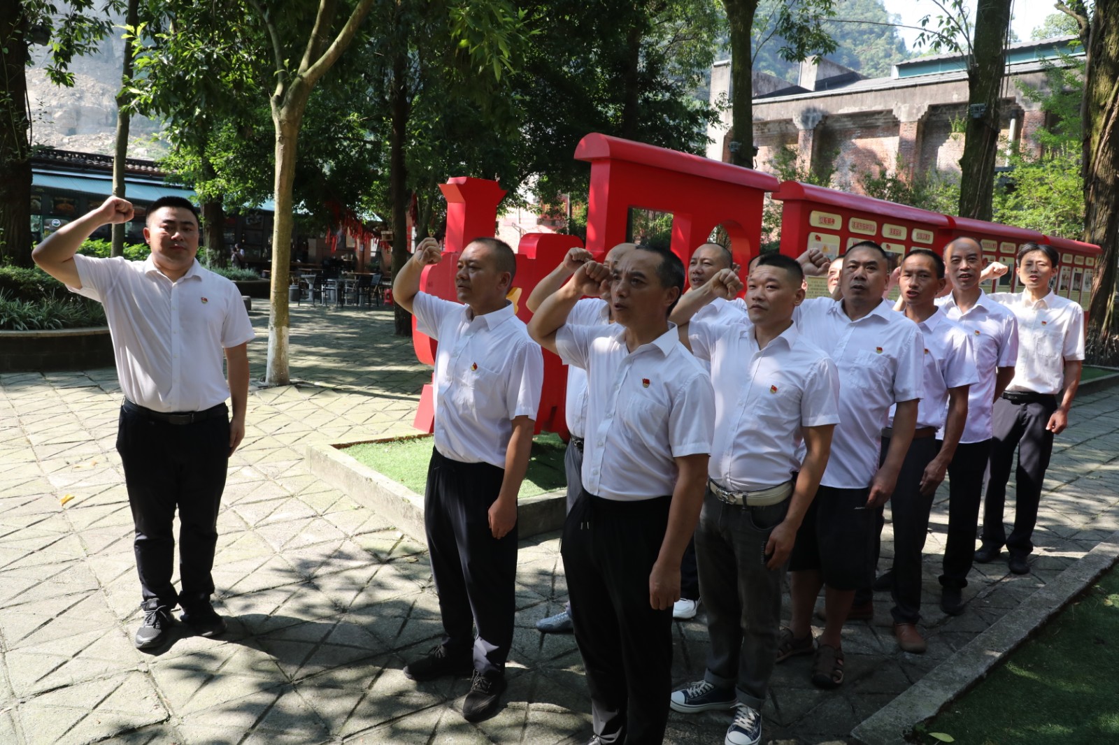 在芭蕉溝愛(ài)國(guó)主義教育基地,大家透過(guò)越崎樓探尋嘉陽(yáng)的歷史文化與發(fā)展變遷,感悟創(chuàng)始人之一孫越崎先生的傳奇人生,駐足礦山博物館,認(rèn)真聆聽(tīng)川投峨旅講解員帶來(lái)的生動(dòng)微黨課,深刻體會(huì)礦業(yè)發(fā)展的艱辛與輝煌。面對(duì)黨旗,全體黨員在黨建長(zhǎng)廊重溫入黨誓詞,錚錚誓言彰顯著堅(jiān)守初心的堅(jiān)定信念。