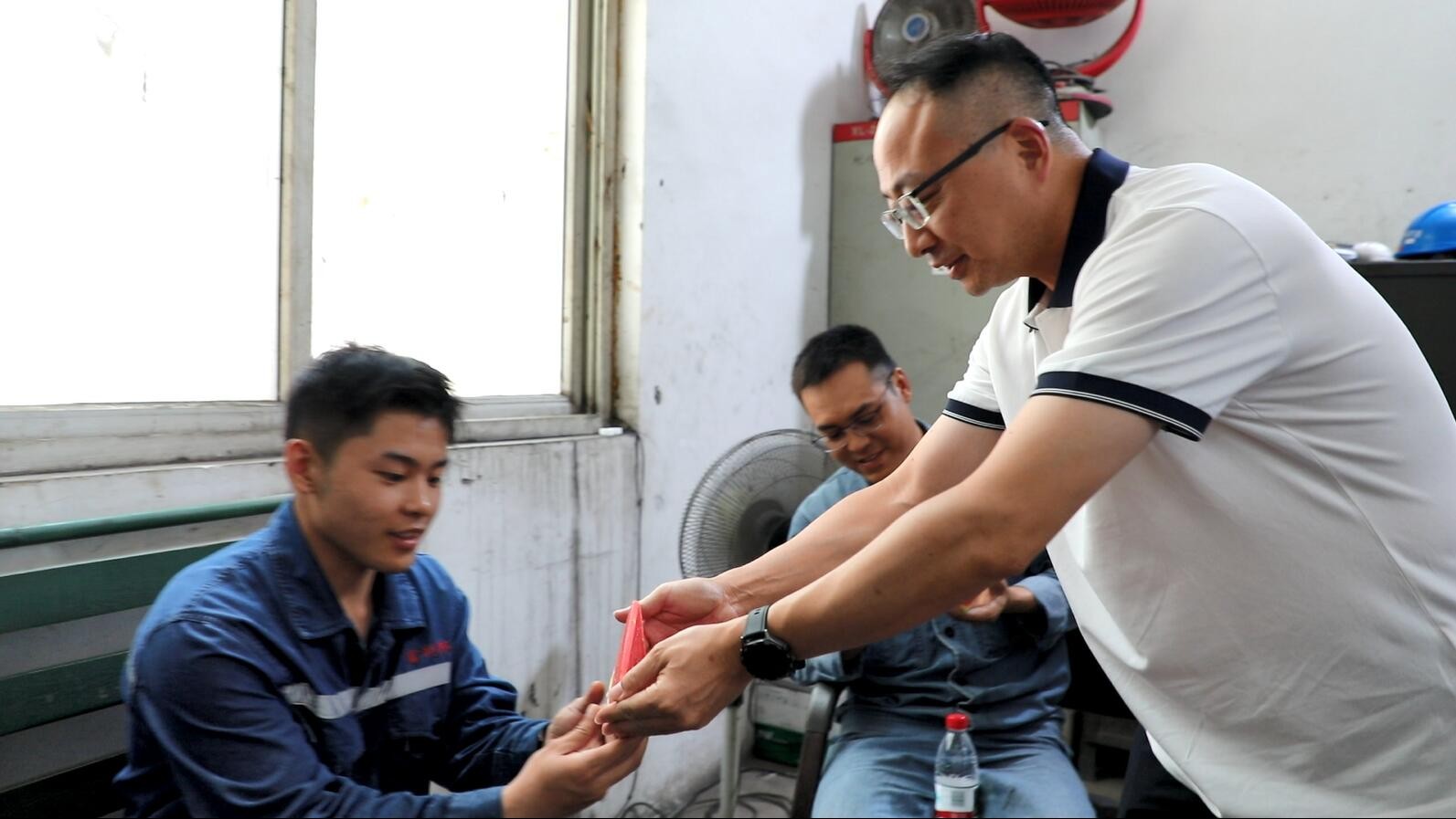 機關(guān)第四黨支部分別前往宜賓福溪粉煤灰公司和機電制造維修分公司開展“送清涼、送安全、送祝?!被顒印T诟O勖夯夜?,黨委副書記、工會主席謝建國為高溫戰(zhàn)線的職工送上礦泉水和西瓜,叮囑大家注意個人防護,預(yù)防中暑。謝建國了解了粉煤灰公司安全生產(chǎn)等多方面的情況,提醒經(jīng)營班子關(guān)注夏季高溫對職工的影響,加強與職工的溝通交流,及時為職工解難事、辦實事,確保職工隊伍穩(wěn)定,助力平安度夏。