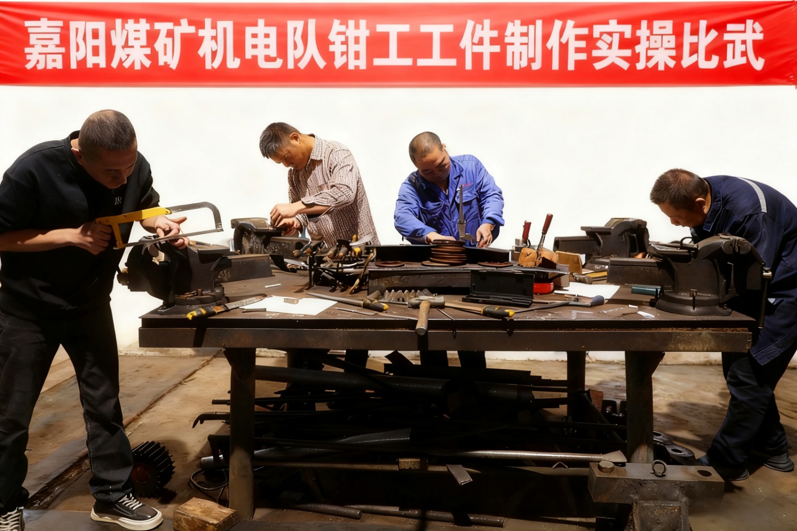 10月23日至24日,嘉陽(yáng)煤礦機(jī)電隊(duì)各車(chē)間呈現(xiàn)出一派繁忙的勞動(dòng)景象,初、中、高三個(gè)級(jí)別的58名電工與鉗工在鉗臺(tái)同步實(shí)操,展開(kāi)鉗工技藝與速度的激烈比拼。這是機(jī)電隊(duì)今年首次大規(guī)模技術(shù)練兵,采用“理論+實(shí)操+綜合比武”模式,以賽促學(xué)、強(qiáng)技,鍛造高素質(zhì)藍(lán)領(lǐng)精英。