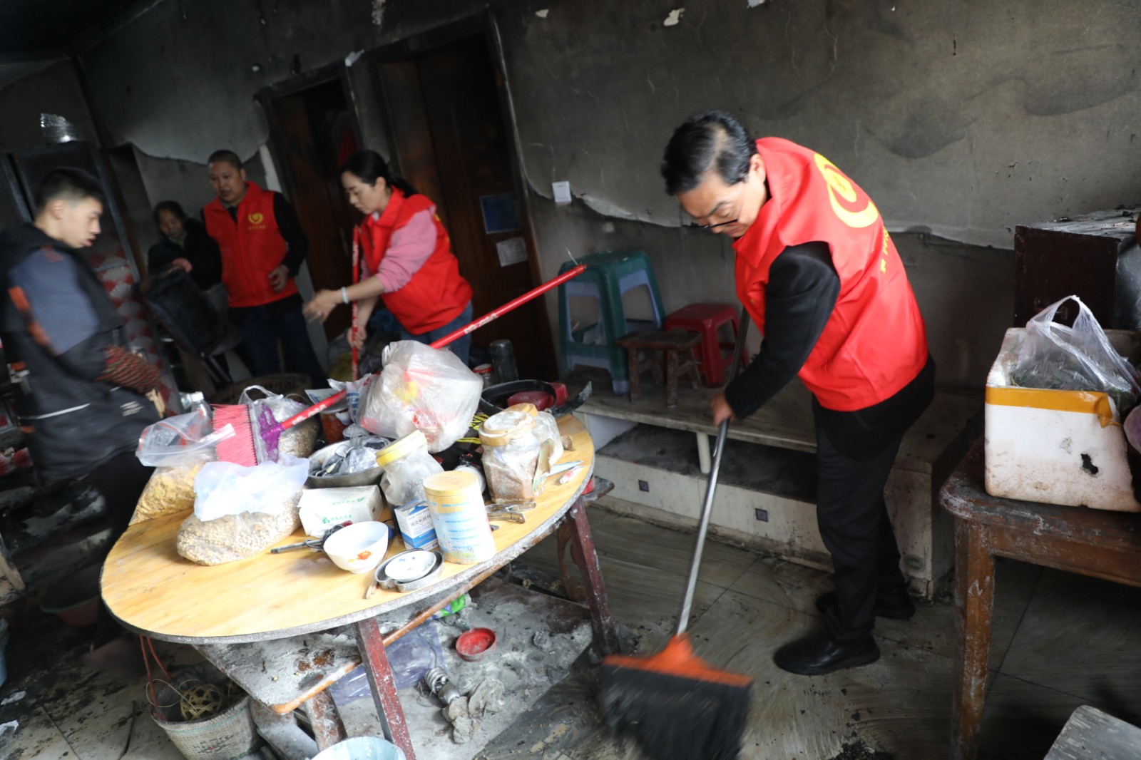 宋國新是智障人員,他的母親是智力2級(jí)殘,父親在一次意外事故中死亡,目前跟隨爺爺奶奶生活,住在礦區(qū)西區(qū)。他的爺爺奶奶也已經(jīng)80多歲了,早已失去勞動(dòng)能力。機(jī)關(guān)第一黨支部在鄉(xiāng)村振興中與他結(jié)對(duì)以來,多次到他家中看望他們,幫助他們解決生活中的實(shí)際困難。3月3日,由于電線線路失火,宋國新家中財(cái)物毀于一旦。機(jī)關(guān)第一黨支部得知情況后,第一時(shí)間組織黨員到宋國新家中看望他們,向他們送去米、面、油等生活用品,為他們打掃火災(zāi)現(xiàn)場(chǎng),幫助他們?yōu)暮笾亟?。?jīng)過近1個(gè)小時(shí)的清掃,完成了火災(zāi)現(xiàn)場(chǎng)的清理工作。