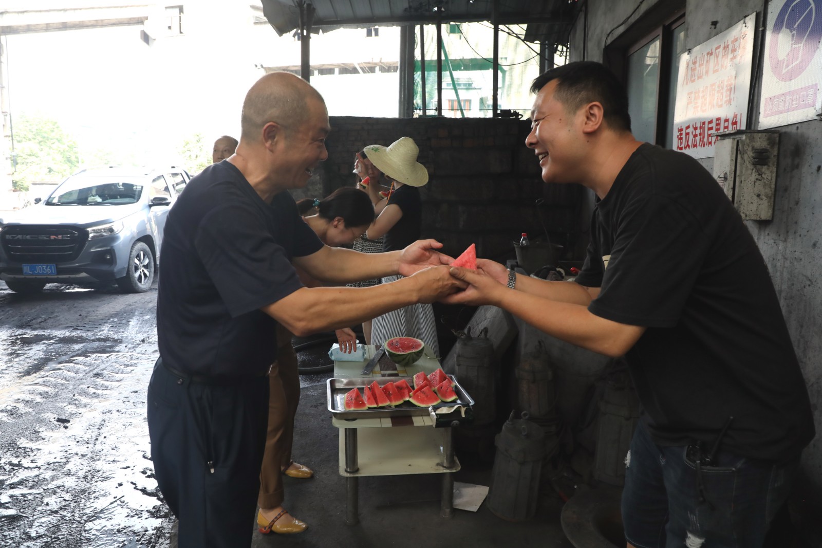 進(jìn)入8月,高溫天氣持續(xù)作威,高溫作業(yè)的職工異常辛苦。范勤英帶領(lǐng)機關(guān)第三黨支部的黨員們來到高溫一線,看望煤礦機電隊機組班、炭壩高溫作業(yè)的職工?!皫煾祩冃跉?,吃塊西瓜涼快下,吃碗冰粉解下暑”,范勤英一邊招呼正在辛勤工作的職工們,一邊為他們送上清甜可口的西瓜、涼爽解暑的冰粉,關(guān)切地詢問他們在高溫時段的作業(yè)情況,叮囑他們一定要合理安排作息時間,有效預(yù)防中暑,切實保障自身安全。同時要求煤礦黨政工團切實采取職工防暑降溫措施,最大限度減少高溫天氣給職工身心健康帶來的影響,確保他們平安度夏。
